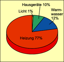 Kakšno je stanje porabe? Iz grafike je razvidno, da je za stari način gradnje na leto potrebne 220 kWh toplotne energije na m2 ogrevane površine. Zato je poraba kurilnega olja 22 l na m2 ter emisija ogljikovega dioksida 60 (!) kg na m2 na leto. Vendar tudi novogradnja, ki ustreza zahtevam predpisov za prihranek energije, še vedno povzroči emisijo ogljikovega dioksida, ki znaša 20 kg na m2 na leto. Včasih učinki ogljikovega dioksida še niso bili dovolj znani, tako da lastnikom starejših hiš ne moremo očitati. Toda danes bi se gradbeniki morali zavedati tega problema.
