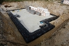 Gradnja objekta, kletne etaže, se je začela 05.12.2006. Kletna etaža je bila izvedena v dveh dneh, tretji dan je bilo betoniranje sten. Slike naslednjih faz bodo sledile. Toplotna prevodnost obodnih sten pritličja in mansarde bo U=0,12W/m2K. |